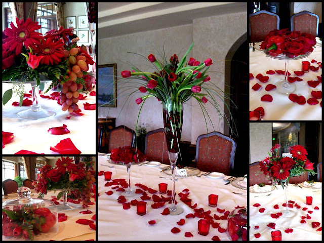 For this event there were two golf teams whose colors were red and blue having a fabulous dinner at The Club at Carlton Woods. One side of the table was red and the other blue.