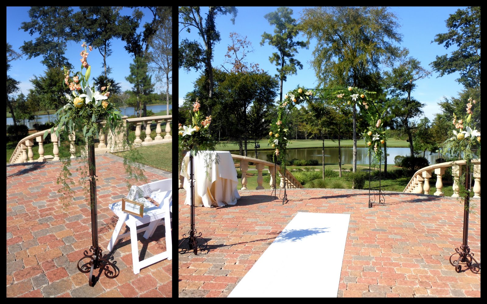 And of course there are always weddings in October. This beautiful ceremony at The Club at Carlton Woods was kept simple with peaches and creams, soft draping greens and just the right touch of traditional elegance with a soft curved arch.