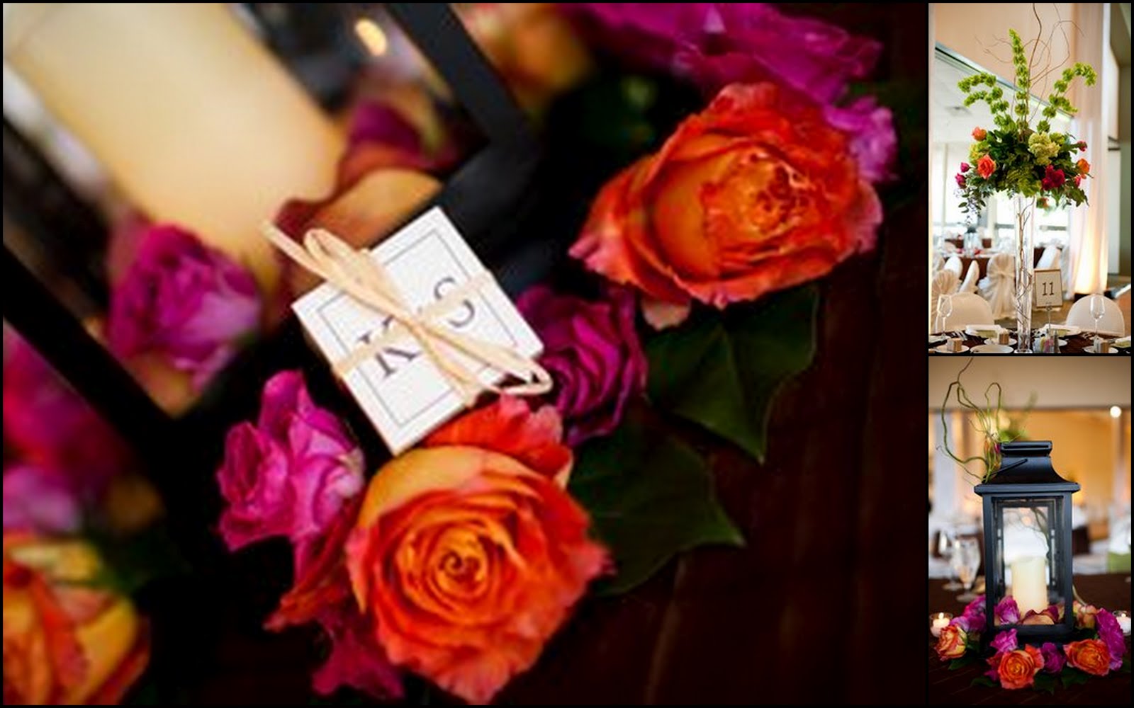 With gorgeous colors the stunning arrangements simply lit up the room! We used lanterns with a wreath of flowers for one style of...