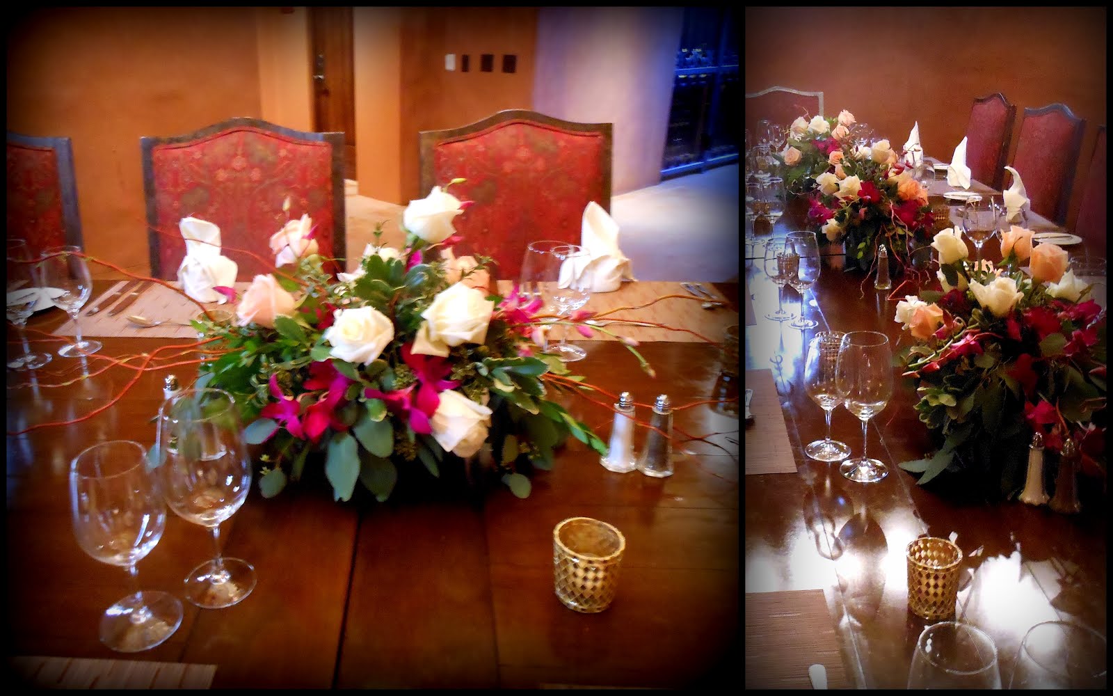 Here is a fabulous photo recap of our very busy April! {Above: The Vista staircase decor with floral tie backs and draped tulle with peach, champagne and ivory roses and yellow alstromeria}