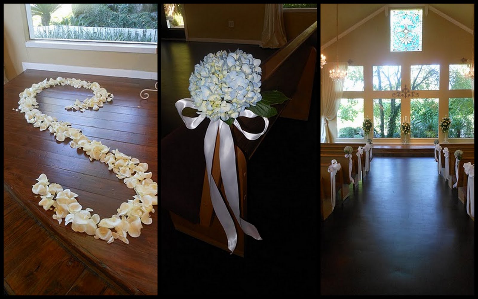 The contrast against the rich wood floors with the soft baby blue and ivory color scheme really dressed up the chapel and drew your attention to the altar area.