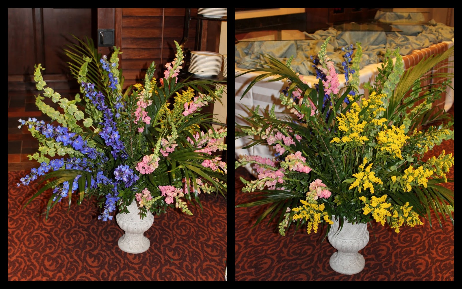 With a simple with and green color scheme and pops of traditional easter colors these beautiful arrangements truly stood out.