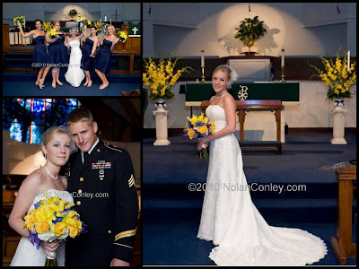 There is something about a man in uniform that makes the ladies go all doe-eyed. But with a handsome groom like this, can you disagree? This lovely couple had a vibrant celebration with yellow and blue accents throughout the ceremony and reception. Kari's bouquet was a traditional style handtied with lots of texture and variety. Her flowers included blooms like hydrangea, asiatic lilies, iris,... -