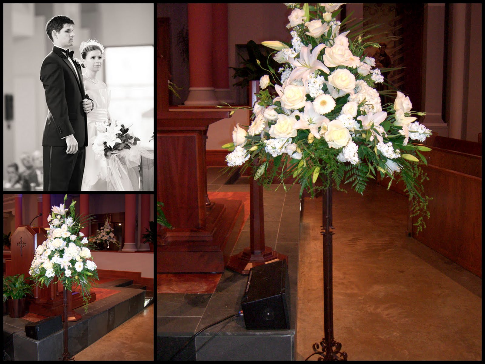 The sanctuary looked amazing with extra large altar arrangements and a garland of flowers and greenery to dress up the kneeling bench... -