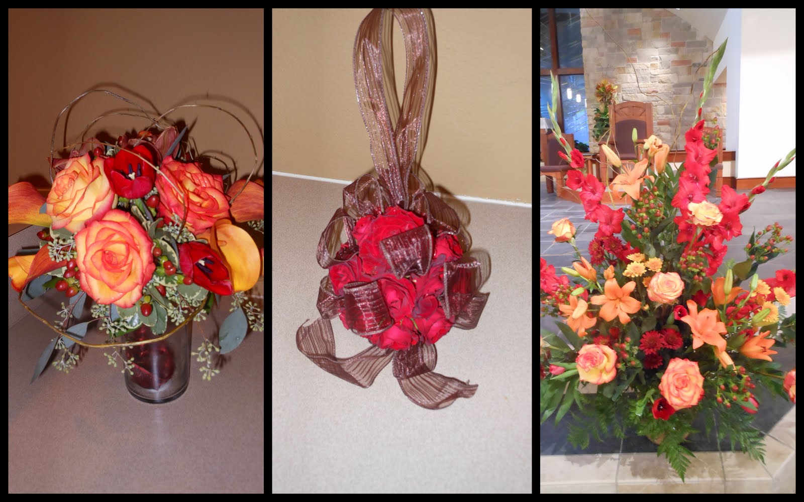 Here is a fabulous photo recap of our very busy April! {Above: The Vista staircase decor with floral tie backs and draped tulle with peach, champagne and ivory roses and yellow alstromeria}