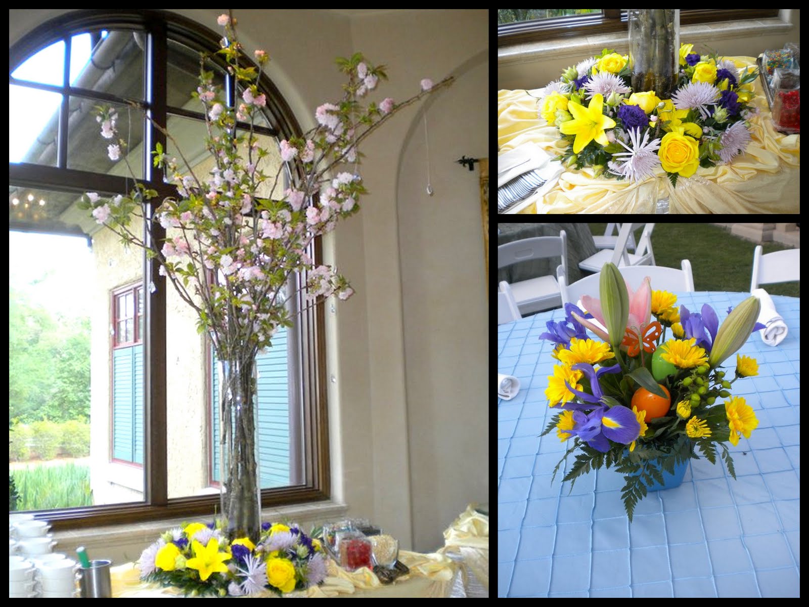 May is one of those months that seems to be simply wild. We love it here; from the weddings to the graduation parties, prom and Mother's Day we stay hoppin'! The picture above are a few styles of arrangements that we used in The Grand Ballroom at The Woodlands Resort and Conference Center. Due to the tall ceiling and shear magnitude of the room we like to use a few different styles of centerpieces...