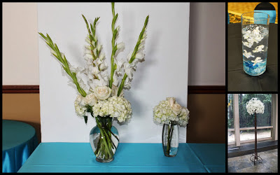 Part 2 of this post takes us to the reception at The Woodlands Resort and Conference Center in The Emerald Ballroom. These beautiful arrangements were AMAZING! Filled with white hydrangea, white spider mums, white oriental lilies (which made the room smell heavenly), white larkspur and bombay purple and white dendrobium orchids they made you say "wow" as you walked in the ballroom!The cocktail... -