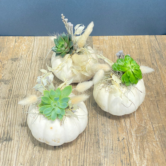White Succulent Pumpkin Trio